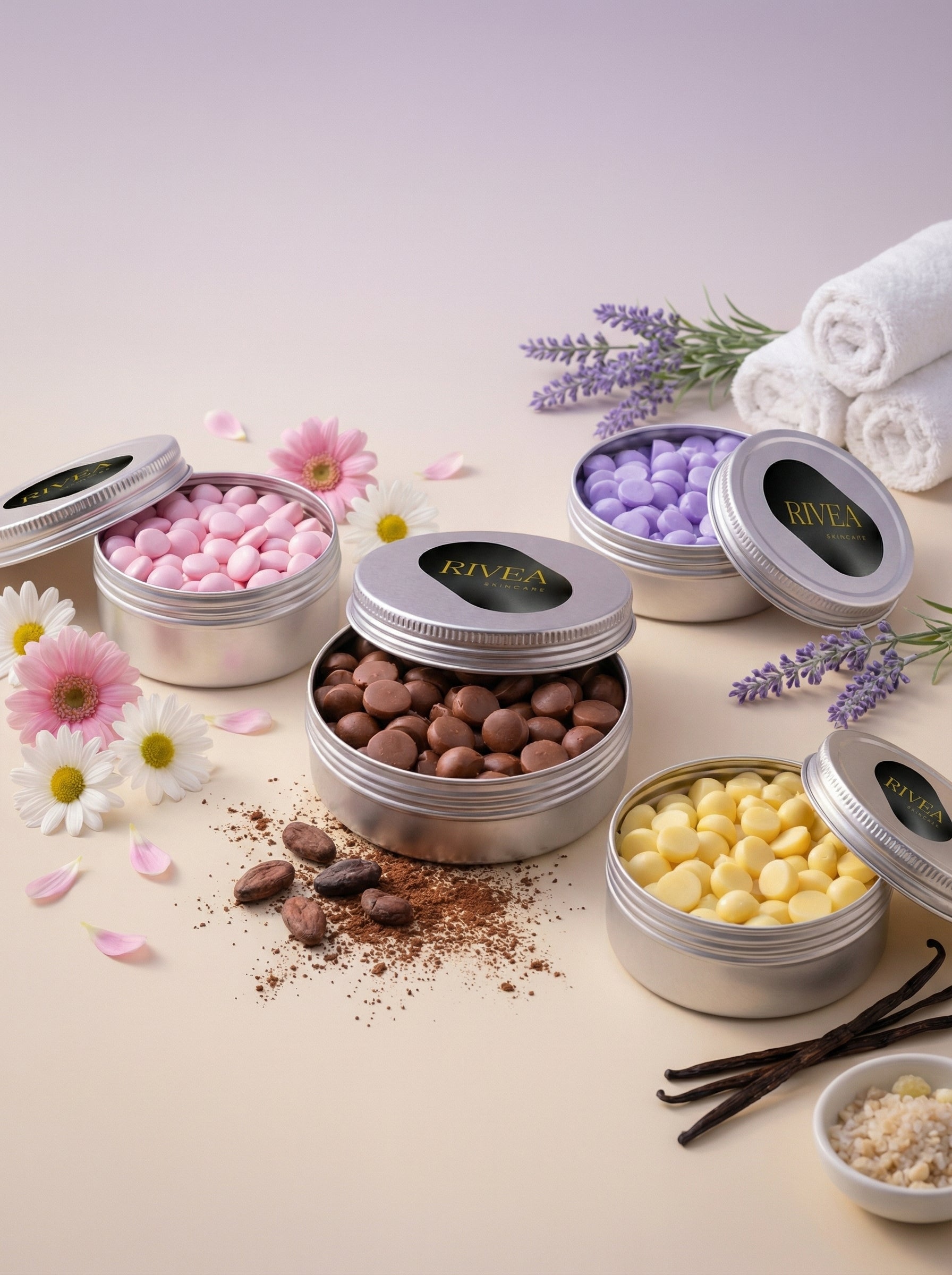Rivea Lotion Dots are solid moisturizers made with nourishing butters and oils. When applied to the skin, they gently melt with body warmth and provide deep hydration without the mess of liquid lotions.